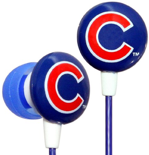 iHip MLB ear buds feature the Chicago Cubs logo on each ear bud and snug fit in ear for excellent noise reduction